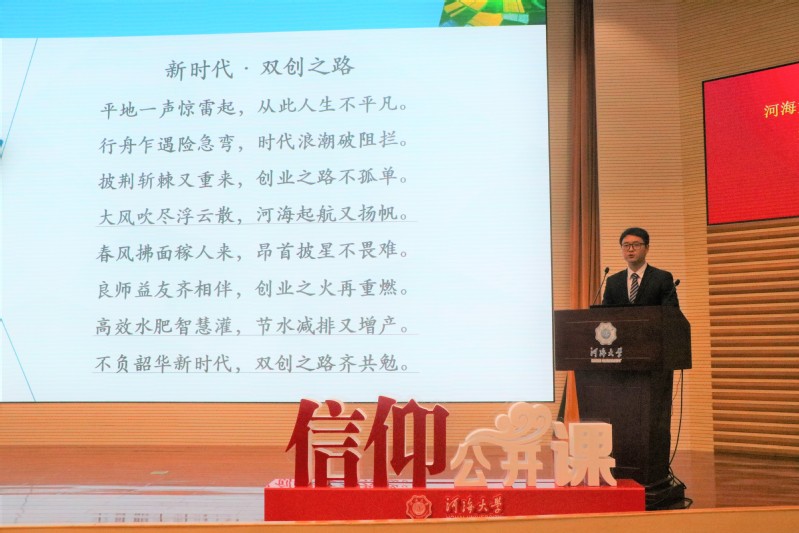 为响应十九大关于创新创业的号召,各种新生力量在十九大“春风”之下,遍地开花,蓬勃发展,局势一片欣欣向荣!为了点亮信仰、鼓舞青年,主讲人蔡少杰还邀请到了坚持理想、奋战在“创新创业”一线,威廉希尔中文网站平台农业生物环境与能源工程18级博士研究生王海渝同学。王海渝同学曾经担任“新气息”、南京空山新雨环保科技有限公司等单位的技术负责人,他以一首名为“新时代·双创之路”的小诗开篇,用创办“方兴未艾”公司的亲身经历和丰厚的成果,有力地证明了在新时代变化与发展的大局势下,农业水利工程专业大有作为,只要挥洒汗水、不懈努力,就一定能在自己的舞台上大放异彩!