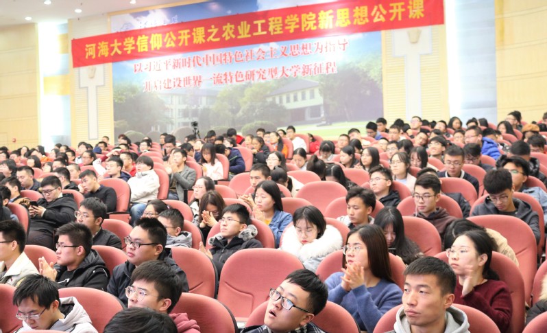 2018年11月25日上午九点半,河海大学农业工程学院信仰公开课之新思想公开课活动在西康路校区闻天馆108隆重举办。农业工程学院党委书记陈毓陵、河海大学校团委副书记戴媛媛、江苏省学联会主席刘祚人等领导出席本次活动,农业工程学院本科、研究生全体同学参加了本次公开课。