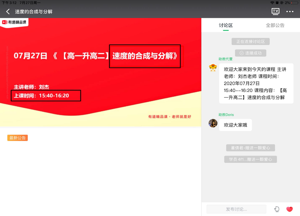 公益课由网易有道精品课提供,用于帮助新高二、新高三的同学在暑假期间的学习。课中,同学们不仅可以学习清北名师在线直播课,还能收获在线互动学习方法,提分解惑。