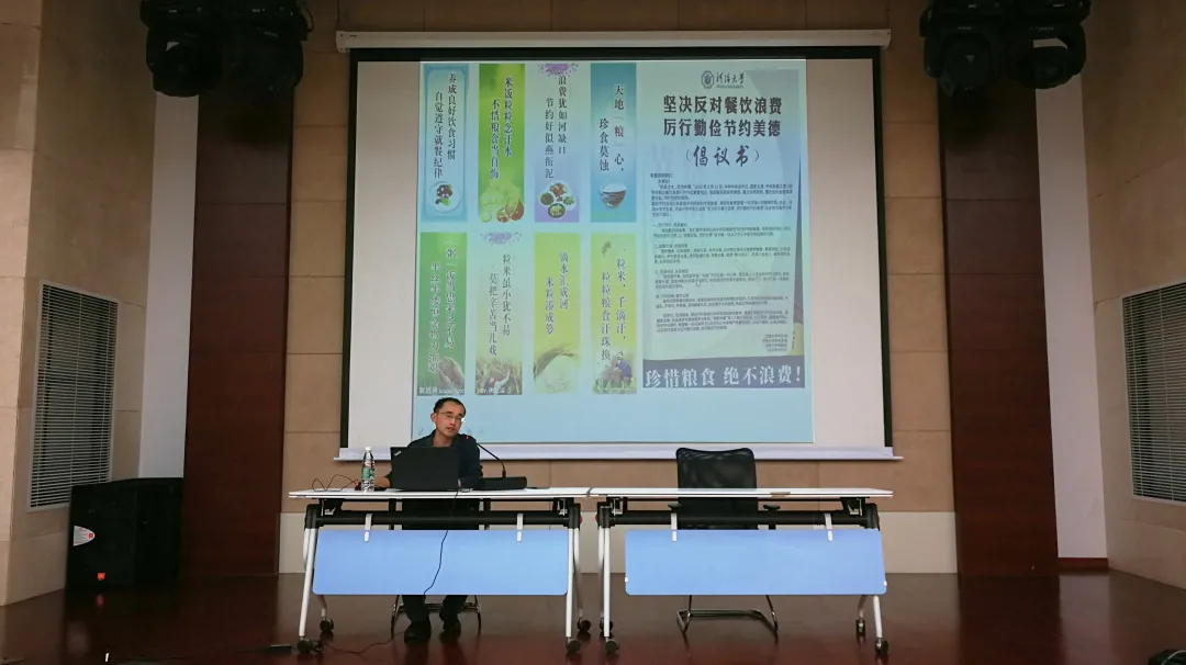 9月23日下午,威廉希尔中文网站平台在行政楼一楼报告厅举行节水讲座。操信春教授以“从农业节水角度谈——厉行节约,反对浪费”为题,向2020级研究生同学们做报告。