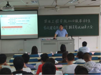5月27日,学院召开2018级本科生学风建设月总结暨期末考试动员大会。学院党委郑润副书记,18级班导师王振昌、刘笑吟老师和18级辅导员李健老师出席,学院18级全体本科学生参加会议。