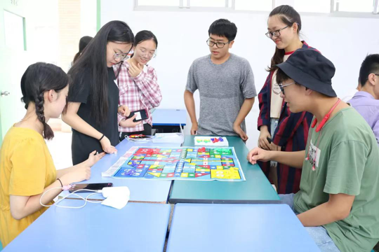 讲解结束后,首先开始游戏环节。各组参赛选手通过进行飞行棋比拼获得虚拟货币,用来进行下一轮的材料采购。游戏的名次越高,获得的金币就越多,能购买的材料就越多。游戏过程中,选手们反响热烈,每个人都很享受游戏带来的乐趣。