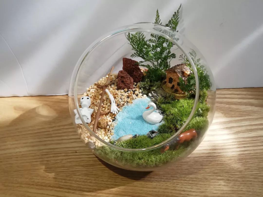 选择完材料之后,各小组开始了微景观的制作,有的好似在构造自己心里的林中小屋,有的好似在制作脑海中的外星城市。每个人心中都有着属于自己的微小世界,各组成员都打开了自己的脑洞,发挥着丰富的想象力,尽自己所能表达自己的内心创想。
