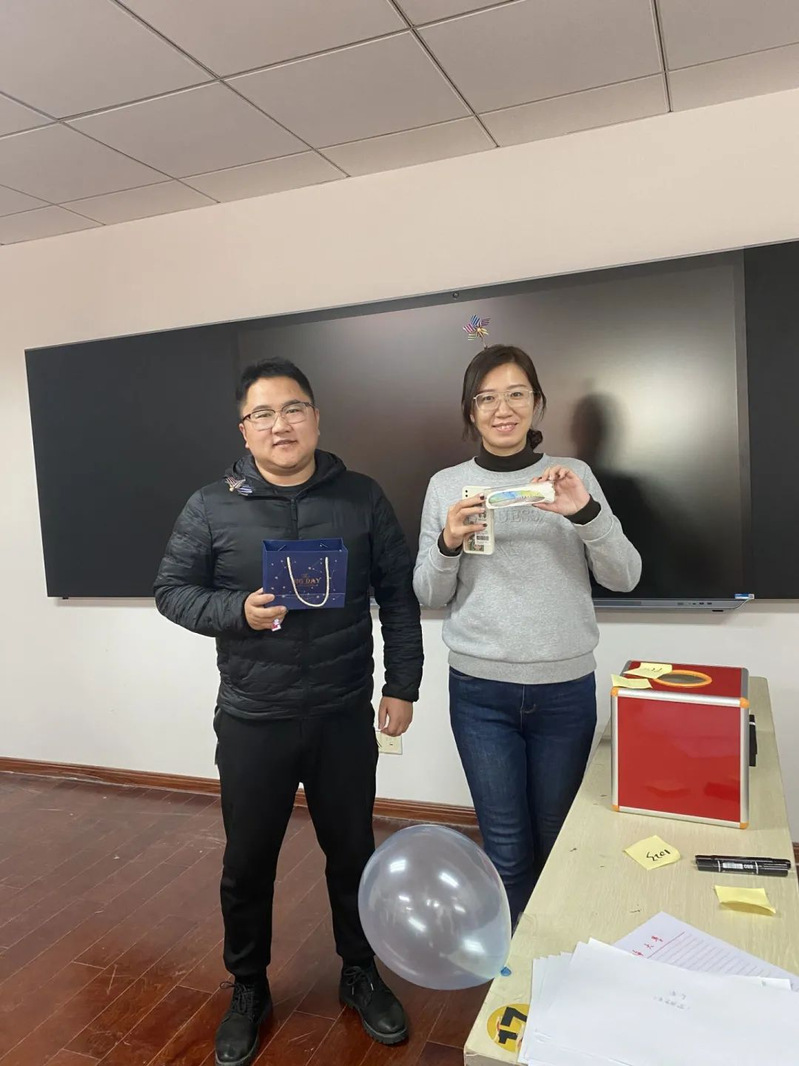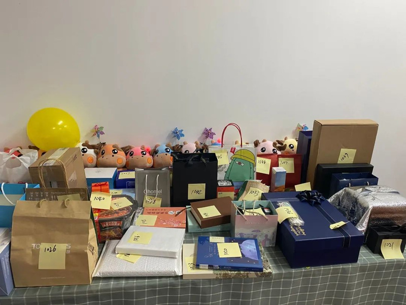 活动现场,学生会全体成员齐心协力,共同布置、主持会场,收集来的礼物整整齐齐地堆满了整张桌面。活动开始大家纷纷从抽奖箱中抽出纸条,并在工作人员带领下领取所对应的礼物,每一次打开都是一次美妙的期待与惊喜。视线转向另一边,你画我猜的灵魂画家,蒙眼吃糖的默契大考验,一个个小游戏趣味无穷,让行政楼c402这个小小的教室中充满了欢笑。