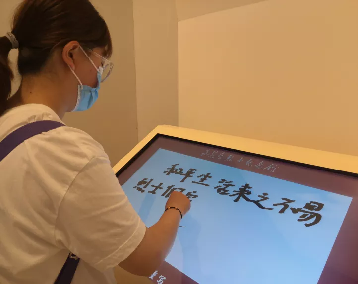 来到二楼,团支部“遇见”了河海大学校友齐国庆。1928年5月5日,齐国庆组织领导了南京市大中学生为济南惨案的罢课游行,提出“对日经济绝交”“恢复民众运动”等要求,当晚与几个同志正筹划“红五月”的暴动计划时,被敌特发现,于7日晚被捕。9月27日凌晨,齐国庆等4名共产党人被杀害于雨花台。团员们在了解齐国庆烈士的事迹之后,深受感触,纷纷写下了自己的参观心得和寄语,同时也自发为烈士们献上电子花束。