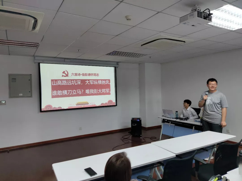 活动以历史时间为线索,由11个党员小组依次上台就各自所选诗词的创作背景、历史故事、诗词赏析、体悟感想等诸多方面展开了详尽的介绍与展示。各组介绍方式各有特色,有声情并茂的情景展示,有娓娓道来的故事叙述,亦有激情昂扬的诵读表演,形式多样,取得了良好的效果。