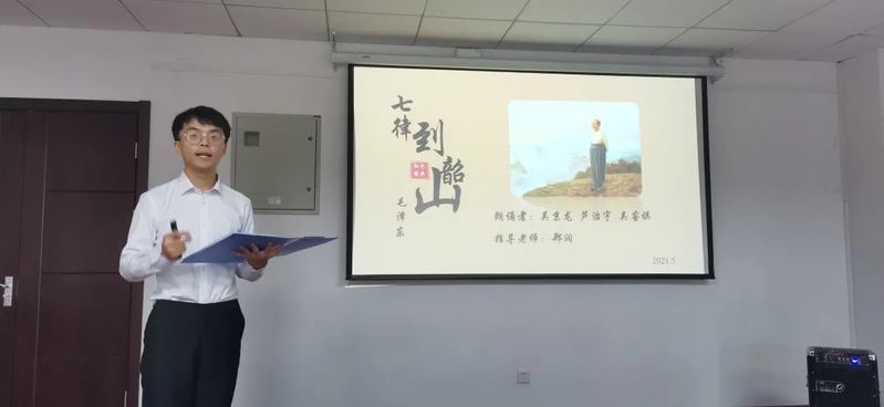 5月9日下午,威廉希尔中文网站平台本科生党支部于行政楼401会议厅开展了毛泽东诗词鉴赏与诵读活动。院党委副书记、院本科生党支部书记郑润参加活动。活动由本科生党支部成员吴京龙、祝小福主持。