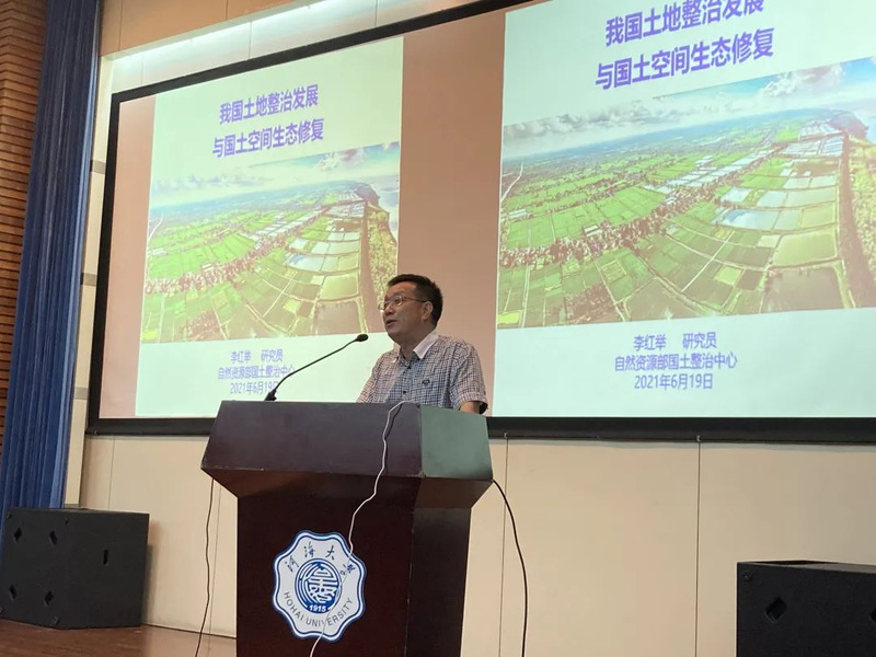 6月19日上午,威廉希尔中文网站平台在江宁会议中心举办农情大讲堂系列活动。本次活动聚焦新时期土地整治发展与国土空间生态修复问题,旨在强化学生专业思想教育、开拓专业视野、厚植专业情怀。河海大学农水专业校友、国家自然资源部国土整治中心研究员李红举主任应邀为20级全体同学作专业知识宣讲交流。学院徐俊增副院长、院党委郑润副书记、学院丁继辉老师、2020级班导师和辅导员李健老师出席本次活动。学院副院长朱成立老师主持活动。