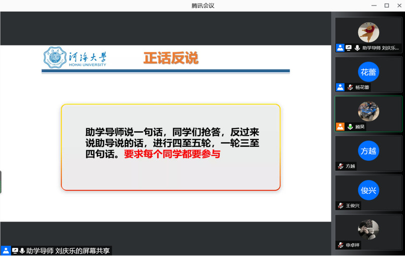 9月10日上午10:00,河海大学农工院21级农水四班在腾讯会议开展了第一次主题班会。农水四班全体同学,以及辅导员李桐共同参会,会议主要由农水四班班导师:顾昊,以及农水四班两位助学导师:杨花蕾、刘庆乐,三人主持。会上主要让四班师生间有了一定的了解。