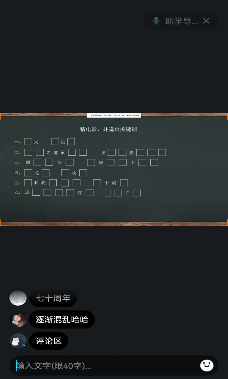 为增进同学间的感情,此次班会设计了精彩的破冰游戏环节,并采取积分制,奖励前三名同学。第一个项目是“看你们熟不熟”,这个环节旨在考验新同学之间的熟悉程度,同学们纷纷争抢开麦,因此班会紧张的气氛逐渐舒缓了很多,同学们开始变得放松,群里发言的同学不断。接下来依次进行的是“猜电影”、“看图猜成语”、“看图猜明星”、“看图猜车标”、“一站到底”一系列游戏,随着游戏的不断进行,班会的气氛也不断高涨,同学们也逐渐熟络了起来。