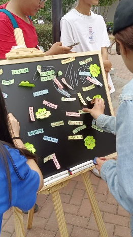 9月25日,农工院科协成员在22舍楼下向活动参与者介绍了本次活动的主题,并为同学们发放了科普读物和活动卡片。同学们了解了相关知识后,在展板上留下了自己对水和气候变化的看法及感悟。9月27日,工作人员对活动卡片进行了回收,并选出其中的优秀作品进行展示。