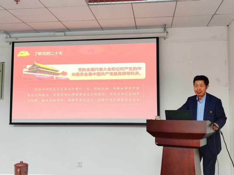 2022年10月31日下午,威廉希尔中文网站平台党委书记朱成立为农业环境研究所党支部和农业环境研究所研究生党支部师生讲授《学习领会党的二十大精神》专题党课。