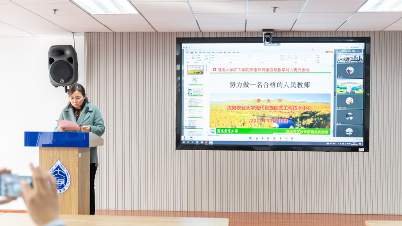 2022年11月16日上午,沈阳农业大学李天来院士受邀为威廉希尔中文网站平台师生做了题为《努力做一名合格的人民教师》的线上专题报告,报告会由副院长张洁教授主持,农工院师生在行政楼C502会议室进行了集体观摩。