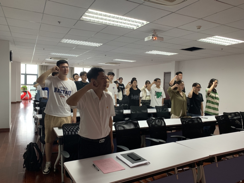 为深入开展学习贯彻习近平新时代中国特色社会主义思想主题教育,庆祝中国共产党成立102周年,2023年7月1日,学院在江宁校区行政楼401举行入党宣誓活动。学院党委书记朱成立、组织员国洪梅,以及学院近一年内新发展的50名党员参加了此次活动。