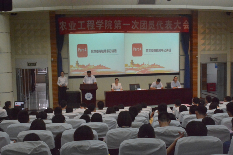 为充分发挥基层共青团组织的桥梁纽带作用,服务青年师生成长成才,于2018年6月20日在江宁会议中心隆重召开农业工程学院第一次团员代表大会,学院198名团员代表参加了此次会议。学院党委陈毓陵书记、校团委陈伟刚书记,学院组织员兼学科、科研秘书国洪梅老师以及学院团委书记、15、17级辅导员薛璟老师出席了此次会议。
