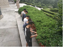 7月3日,由农工院农水一班八名同学组成的南京革命先烈实践团于中山陵以及航空烈士墓以及其纪念馆进行了参观学习和纪念。到达目的地后,实践团成员仔细阅读了关于中山陵的解释,与近代史中相关的知识进行了结合讨论,并怀着敬畏之心来到孙中山先生的陵墓,感怀他老先生为革命奉献的一生。随后,实践团成员来到航空烈士墓,看着那一块块石碑上一个个光荣的名字,大家真诚地为他们系上了红丝带,表示尊敬与纪念,并自发在纪念石碑前默哀了三分钟。随后大家到纪念馆参观,众多飞机模型与各种空战的资料让成员们对那段过去的历史充满了解的兴趣,展馆的工作人员为大家详细地介绍了当年空战的事件,使大家深刻感受到中华民族以爱国主义为核心伟大民族精神。