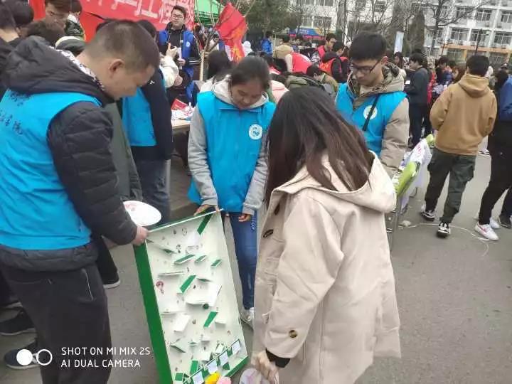 上午十点五十分,志愿者们在六食堂前集合完毕,进行了简单的现场布置。一部分志愿者负责悬挂事先做好的横幅,张贴旗帜;另一部分摆放整齐活动中要用到的弹球台、胸章DIY机、水质监测仪器、雷锋头像纪念笔、雷锋搪瓷杯等物品。十一点半左右,准备工作基本完成,也陆陆续续有同学们前来食堂。志愿者做的弹球台吸引了不少来往学生的注意力,他们纷纷好奇地询问如何参加游戏环节。根据游戏规则,同学们先进行弹球台游戏,通过弹球掉落的位置随机选择之后的小活动。