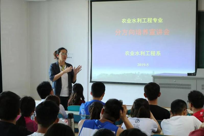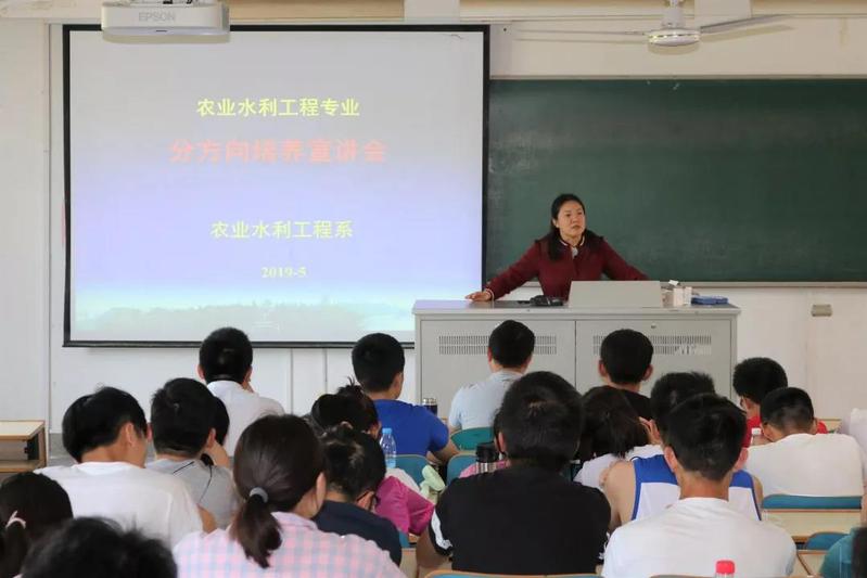 农业水利工程专业分流包括农田水利和水土保持两个方向,翟亚明、冯宝平、毕利东三位老师分别就这两个方向的特色和差别、主修课程的差别以及威廉希尔中文网站平台近三年毕业生考研、就业情况等内容向同学们作了介绍。同学们需要结合自身情况与专业意向进行填报。