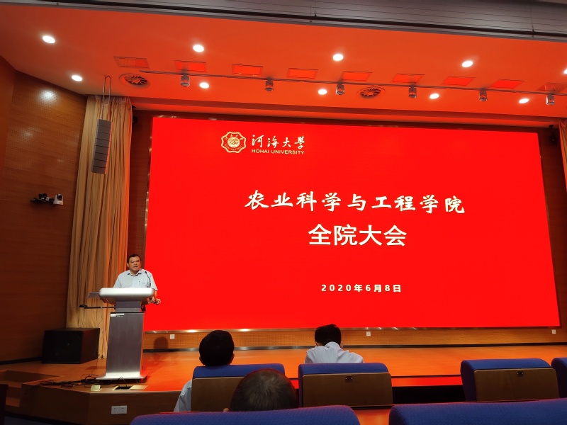 6月8日,威廉希尔中文网站平台在科学会堂203召开全院大会,学院党政领导和全体教师参加会议。会议由学院党委书记陈毓陵同志主持。