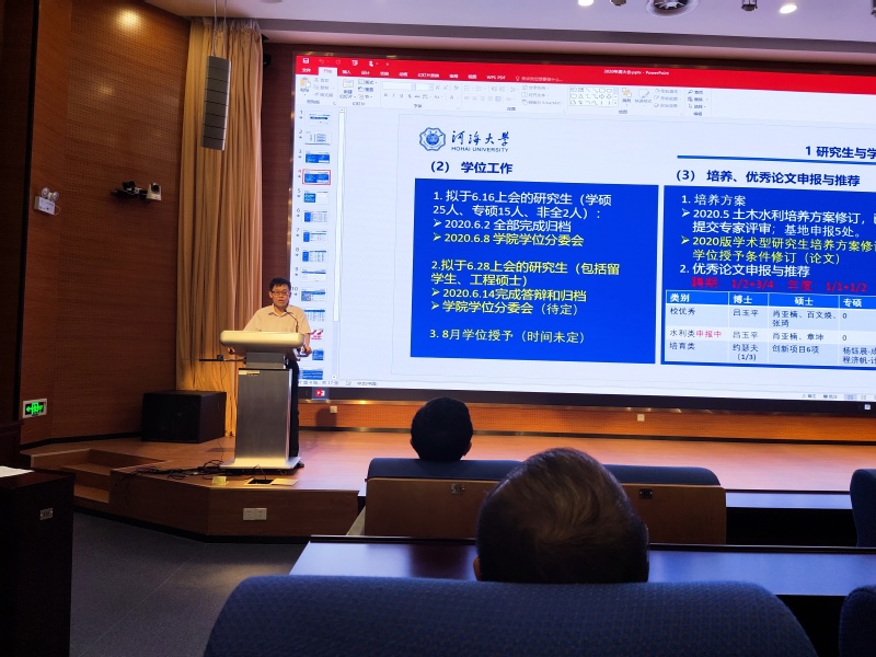 随后,学院朱成立副院长、徐俊增副院长、郑润副书记分别就分管的教学科研、学科平台和学生管理工作进行了发言,他们在总结前段时间工作成效的基础上,结合学校聘期考核任务,对全体教师提出了期望和要求。