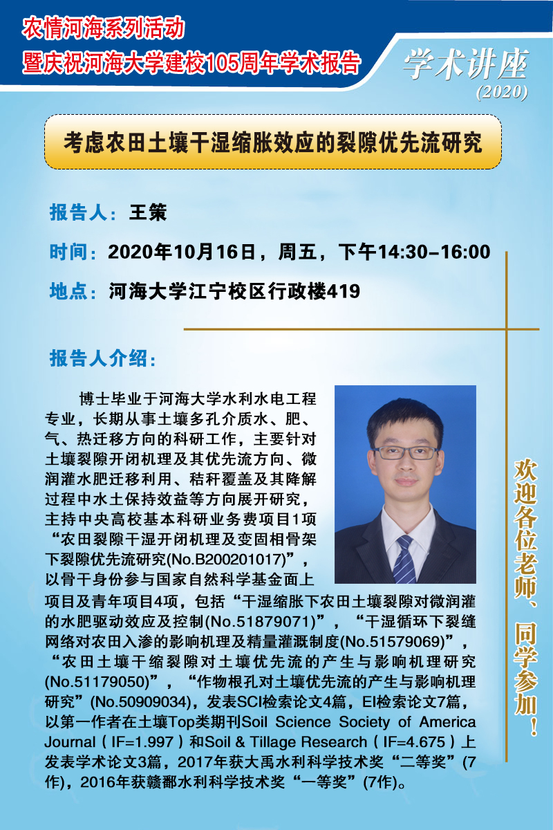 农情河海系列活动暨庆祝河海大学建校105周年学术报告