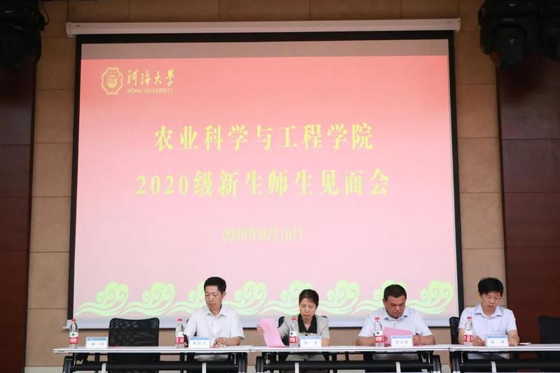2020年9月10日上午威廉希尔中文网站平台隆重举行了2020级新生师生见面会暨开学第一课。学院院长陈菁、院党委书记陈毓陵、副院长朱成立、副院长徐俊增、院党委副书记郑润、院长助理陈丹、学院农业水利工程系主任翟亚明、农业节水研究所所长郭相平、灌溉工程研究所所长缴锡云、实验中心主任王为木、专业建设办公室主任张睿、交流与服务中心副主任刘笑吟、20级农水一班班导师李江、二班班导师陈会向、三班班导师余正洪、四班班导师刘祥、土治一班班导师冯根祥、土治二班班导师黄萱、院团委书记及19级本科生辅导员薛璟、18级及20级本科生辅导员李健以及全体2020级本科新生出席了此次活动。