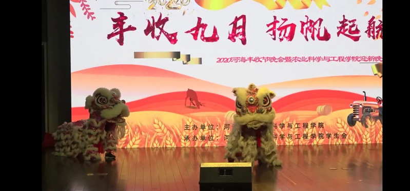 随着“河海雄狮贺丰收”欢快音乐的响起,来自校舞狮协会的各位同学用生动的舞狮表演正式拉开了活动的序幕。朗诵节目《丰收礼赞》为大家生动展示了中国农业的发展历程,分享丰收的成果与喜悦。由民族乐团团长韦琦所演奏的竹笛曲目《春到湘江》婉转动听,用传统音乐的方式呈现出了一幅优美的山水画卷。来自加纳的留学生团体Hohai Jama Group用最具风情的传统歌舞迎接丰收节的到来,同时也为2020级的新同学献上了友好的祝福。