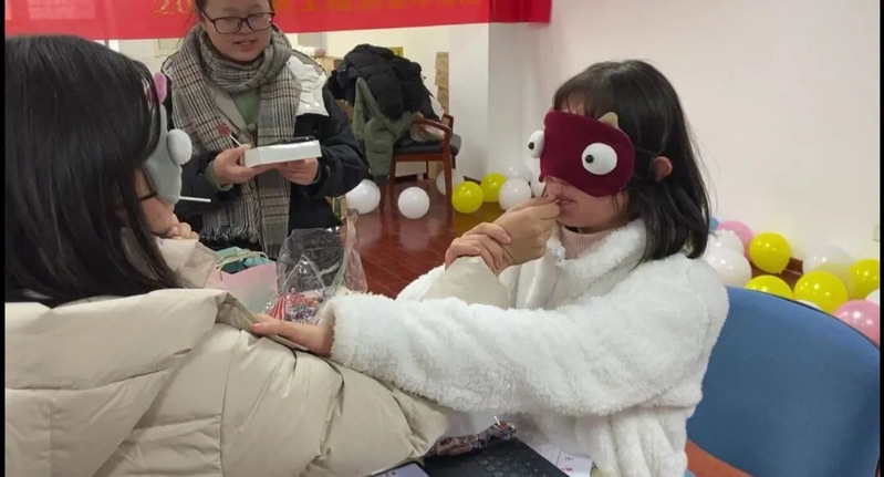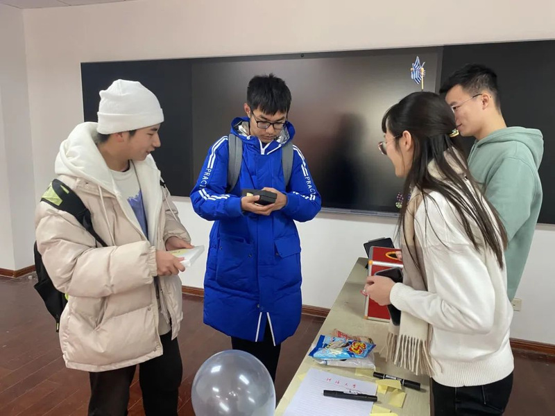 活动现场,学生会全体成员齐心协力,共同布置、主持会场,收集来的礼物整整齐齐地堆满了整张桌面。活动开始大家纷纷从抽奖箱中抽出纸条,并在工作人员带领下领取所对应的礼物,每一次打开都是一次美妙的期待与惊喜。视线转向另一边,你画我猜的灵魂画家,蒙眼吃糖的默契大考验,一个个小游戏趣味无穷,让行政楼c402这个小小的教室中充满了欢笑。