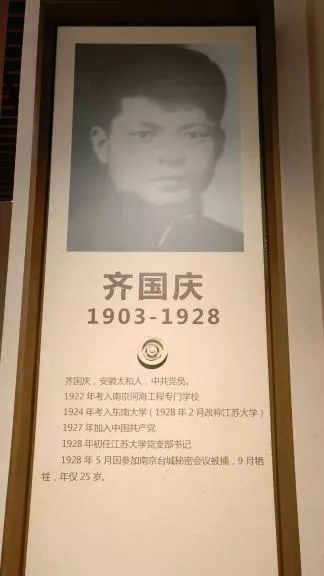 来到二楼,团支部“遇见”了河海大学校友齐国庆。1928年5月5日,齐国庆组织领导了南京市大中学生为济南惨案的罢课游行,提出“对日经济绝交”“恢复民众运动”等要求,当晚与几个同志正筹划“红五月”的暴动计划时,被敌特发现,于7日晚被捕。9月27日凌晨,齐国庆等4名共产党人被杀害于雨花台。团员们在了解齐国庆烈士的事迹之后,深受感触,纷纷写下了自己的参观心得和寄语,同时也自发为烈士们献上电子花束。