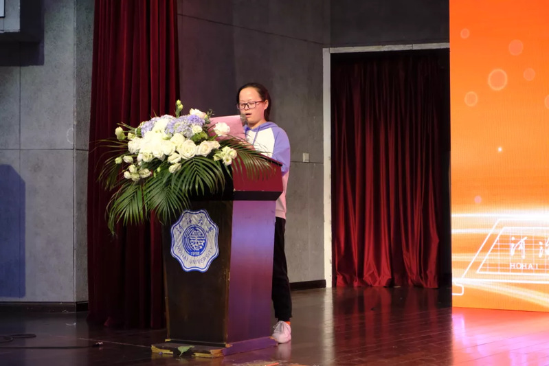 2018级优秀学生代表韦琦同学着重分享了自己在文艺方面的经历。从初入河海的学艺少年成长为大学生艺术团民族乐团团长,他始终秉持不忘初心的精神与尽职尽责的态度,做校园文化的优秀传播者。除此以外,他也在科研与竞赛方面多点开花,取得了丰硕的成果。