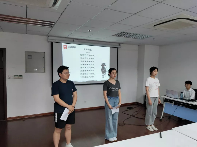 活动以历史时间为线索,由11个党员小组依次上台就各自所选诗词的创作背景、历史故事、诗词赏析、体悟感想等诸多方面展开了详尽的介绍与展示。各组介绍方式各有特色,有声情并茂的情景展示,有娓娓道来的故事叙述,亦有激情昂扬的诵读表演,形式多样,取得了良好的效果。