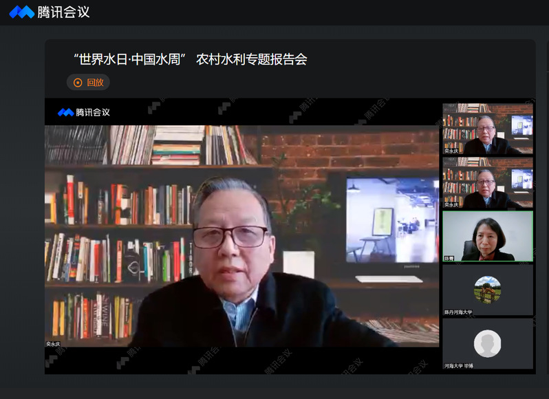 2022年3月25日,由江苏省水利学会农村水利专业委员会、江苏省灌区联盟、威廉希尔中文网站平台联合主办的“世界水日·中国水周”农村水利专题报告会,通过腾讯会议和线上直播的方式隆重举行。会议邀请了全国“百篇优博”和国家自然科学基金“优青”项目获得者、中国水利水电科学研究院水利所副所长张宝忠教授级高级工程师,以及全国劳动模范、国际节水技术奖获得者、河海大学兼职教授、浙江省余姚市水利局原总工奕永庆教授级高级工程师作专题报告。江苏省水利厅农村水利与水土保持处沈建强处长出席会议并致辞。农村水利专业委员会专委会主任、河海大学威廉希尔中文网站平台院长陈菁教授主持会议并作会议总结。