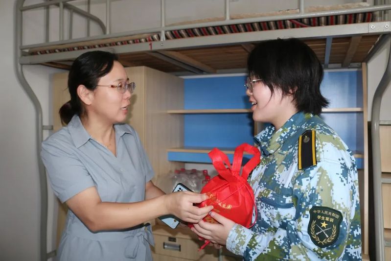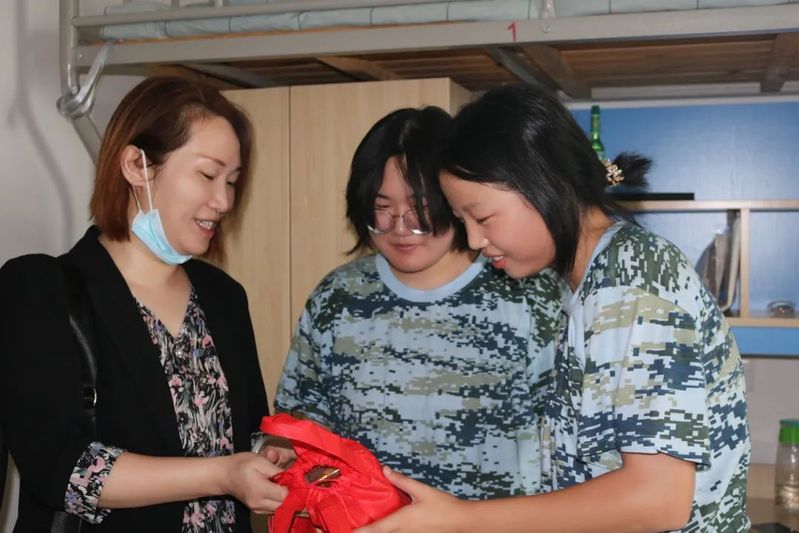 院领导,辅导员和班导师走进每一间寝室,关心问候每位同学的近况,与同学们亲切交谈。郑书记十分关心同学们对大学生活及军训的适应情况,希望同学们积极参训,养成自律的习惯,尽快适应大学生活,并祝福同学们中秋节快乐;张院长勉励同学们利用军训机会锻炼自己,培养吃苦耐劳的品质,嘱咐大家要常与家里联系,多回应父母寄挂,让父母放心。
