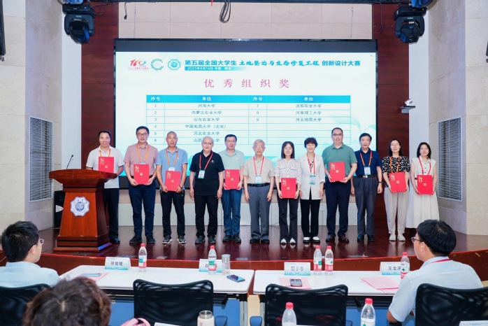 经过激烈角逐,大赛最终评选出特等奖23项、一等奖36项、二等奖49项,并颁发优秀指导教师奖41名、优秀组织奖9项。河海大学获优秀组织奖并斩获5项特等奖,4项一等奖。颁奖典礼上,中国农业工程学会监事会监事丁为民对大赛评审情况作点评,自然资源部土地工程技术中心主任陨文聚视频讲话,中国农业工程学会土地利用工程专委会主任委员白中科代表组委会作总结,对参赛作品体现的创新思维和实践能力给予高度评价。