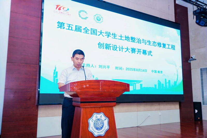 开幕式上,河海大学副校长沈扬致辞。他代表学校,向各位莅临大赛的专家、领导、老师和学生表示热烈的欢迎,向长期关心学校发展的各界同仁表示诚挚感谢。他指出,全国大学生土地整治与生态修复工程创新设计大赛是面向高校学生的专业赛事,聚焦土地资源管理与生态保护领域,鼓励学生结合学科知识提出创新解决方案。本届大赛不仅是一次学术竞技的盛会,更是与行业前沿深度对接的平台。大赛将搭建学术交流、创新实践、友谊合作的平台,促进高校间资源共享、优势互补,为土地整治与生态修复的教育事业发展作出贡献。